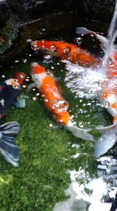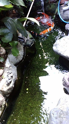 じさまが出かけてるから花壇の水やりと鯉のエサヤリ
